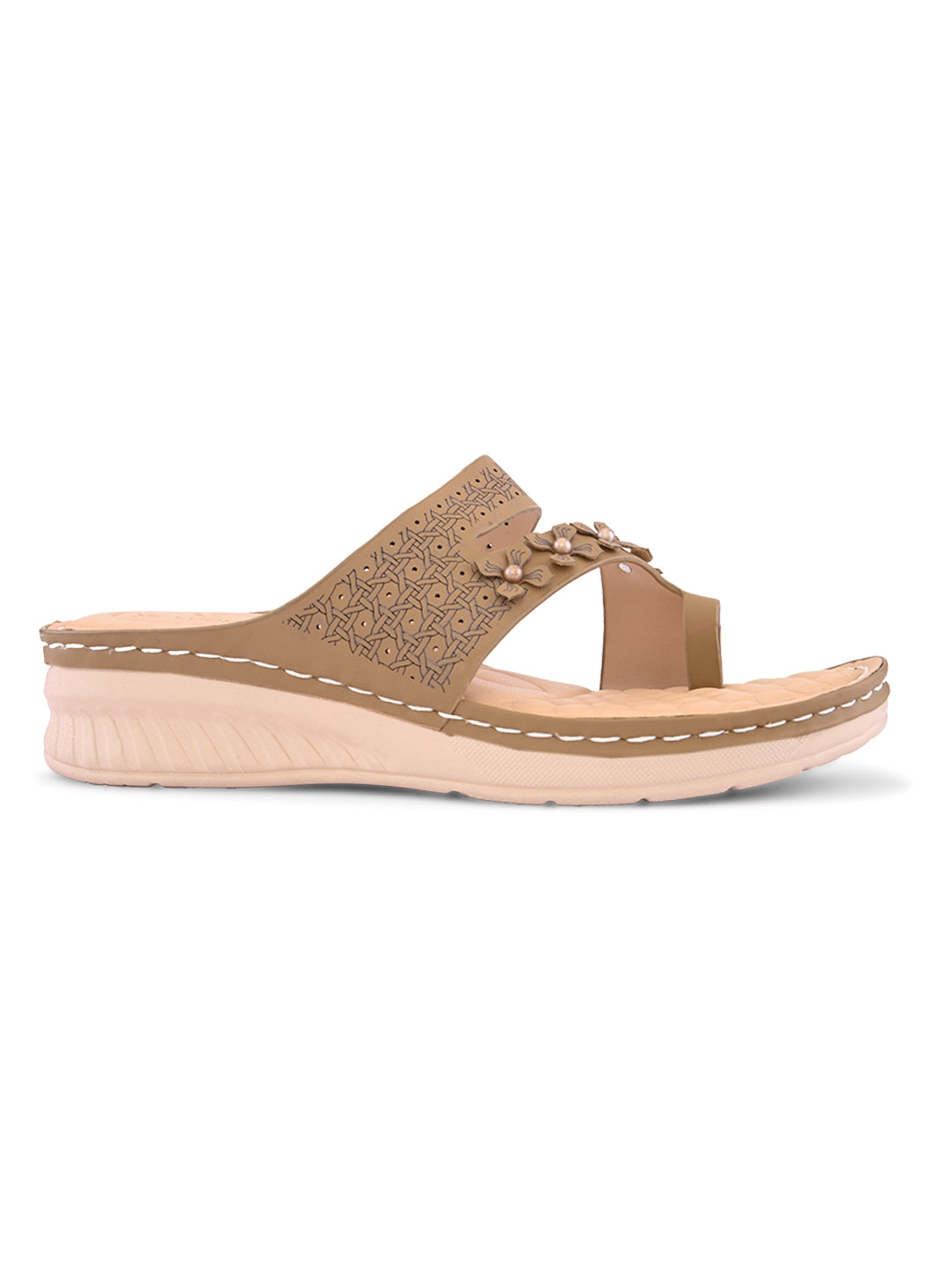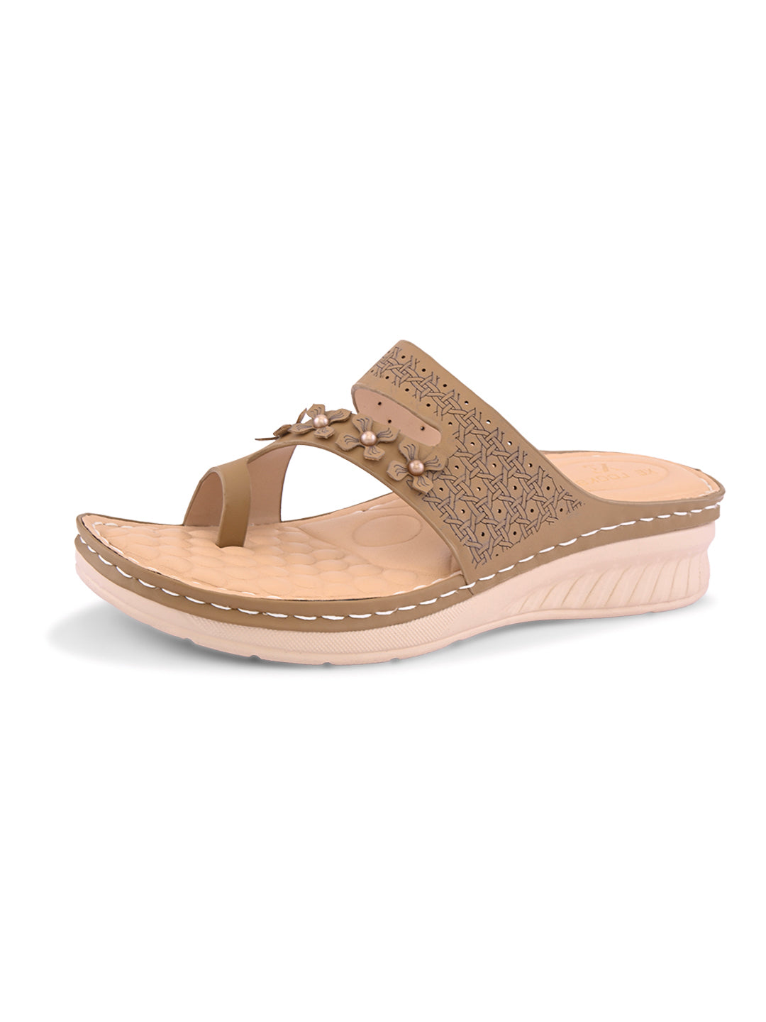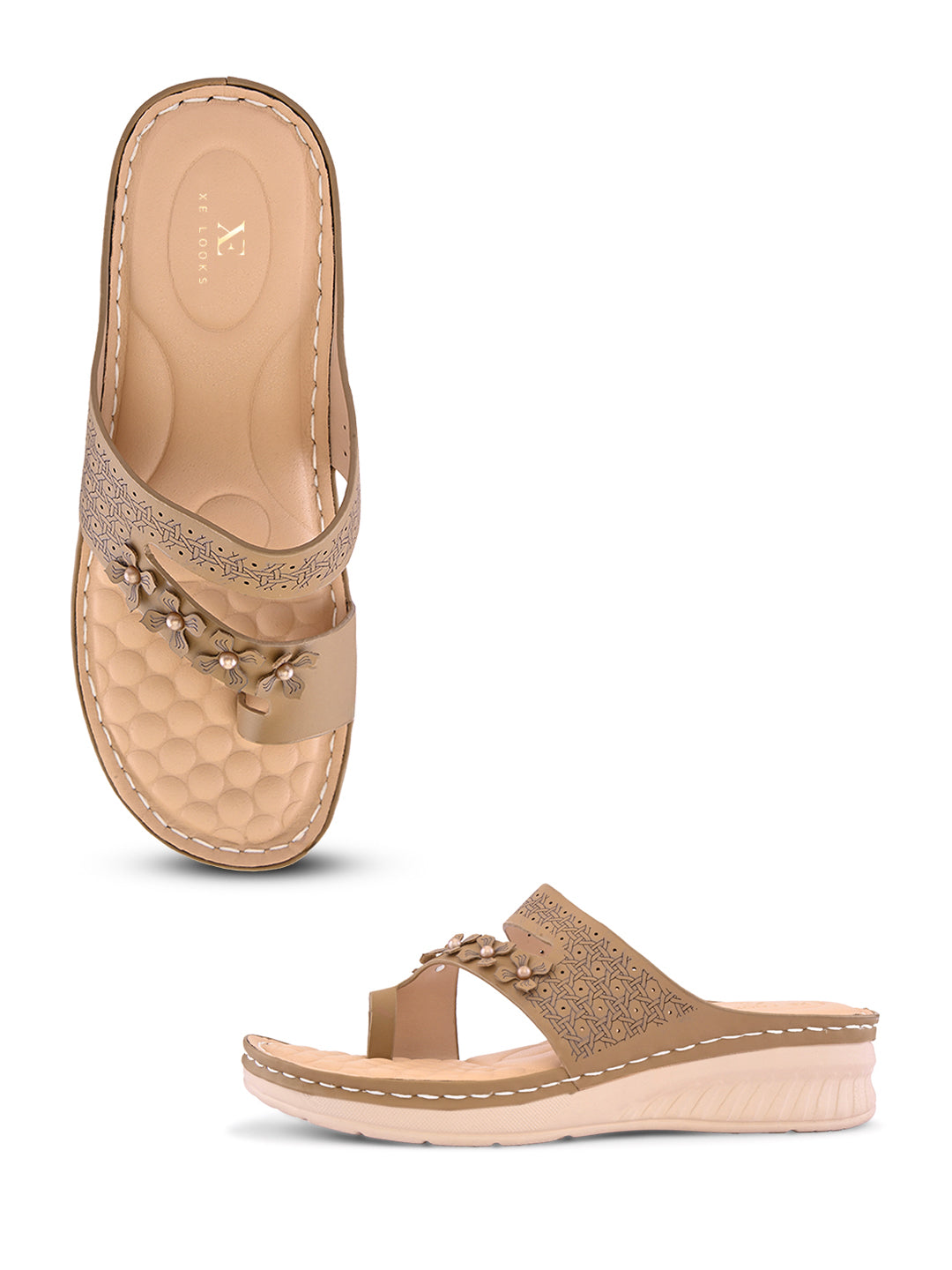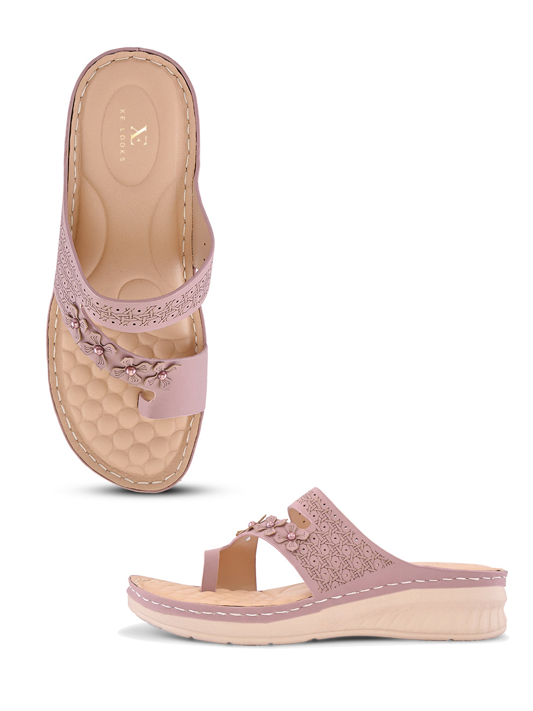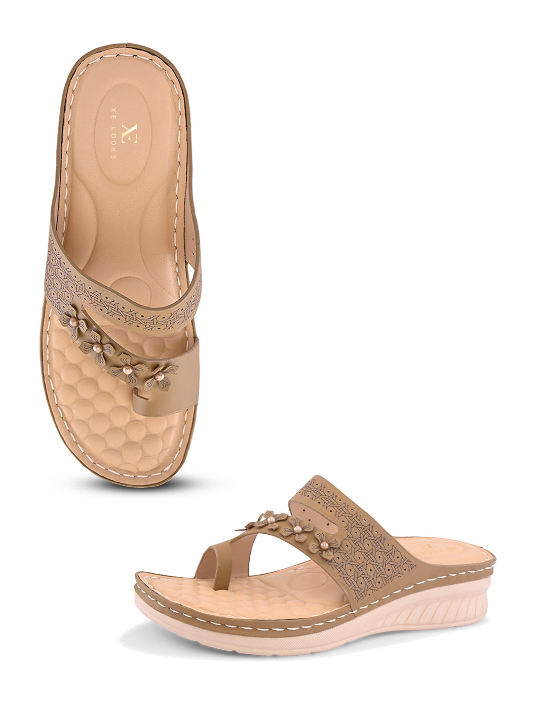 Step into everyday comfort with XE Looks Women’s Floral Cut-Work Slip-On Sandals. These elegant and lightweight sandals are designed with a soft cushioned footbed that offers exceptional comfort for all-day wear. The beautifully crafted laser-cut upper adds a touch of sophistication, while the floral embellishments with bead detailing bring a feminine and stylish charm. The slip-on design ensures easy wearability, making them perfect for daily use, casual outings, home wear, or light walking. Made with a durable yet soft sole, these sandals provide gentle support and a relaxed feel with every step.